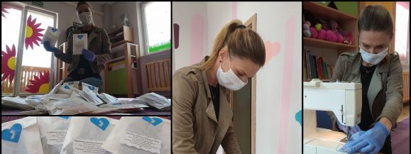 Oprócz przygotowywanych pomocy zabawowych do prawidłowego rozwoju i umilania czasu dzieciom, przygotowaliśmy zdezynfekowane stanowiska oraz zadbaliśmy o własną dezynfekcje rąk i ochronę twarzy do produkcji maseczek ochronnych dla dzieci i rodziców, aby dbać o ich zdrowie i wesprzeć we wspólnej walce.