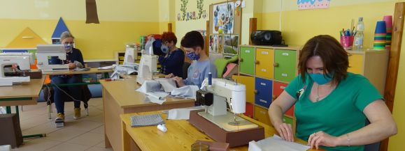 Bezpłatne maseczki ochronne dla mieszkańców gminy Łęczna szyją wolontariuszki skupione wokół Facebookowej grupy "Nitki życia", a także łęczyńskie Amazonki, pracowniczki miejskich szkół, przedszkoli i bibliotek oraz panie z Koła Gospodyń Wiejskich "Dworzanki" z Podzamcza. Materiał oraz gumki, troczki i nitki zakupił łęczyński ratusz.