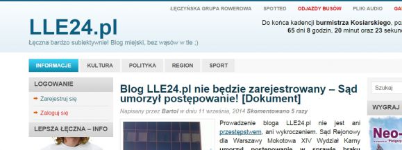 Sąd stwierdził, że LLE24 nie jest czasopismem, tylko prywatnym dziennikiem (blogiem), bo – jak czytamy w uzasadnieniu - Łukasz Siegieda przedstawia w nim „(…) własne spostrzeżenia i własne opinie o danym wydarzeniu” , a to świadczy o tym, że „publikacje nie mają charakteru ogólnoinformacyjnego, a jedynie charakter prywatny. W ocenie Sądu celem tych publikacji jest jedynie przedstawienie szerszemu gronu osób subiektywnej (prywatnej) opinii ich autora na dany temat i komentowanie (w subiektywny sposób) otaczającej go rzeczywistości.”