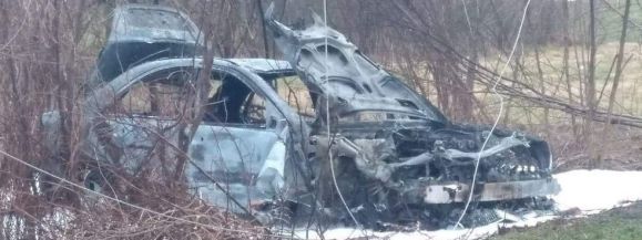 Mercedes spalił się w niedzielę rano w Szpicy (gm. Puchaczów).
