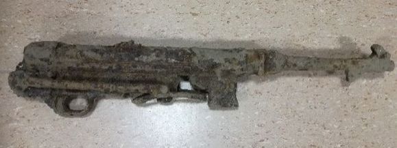 Broń była w całości skorodowana i nie widniały na niej żadne cechy identyfikacyjne. Policjanci zabezpieczyli przedmiot i sprawdzili dokładnie miejsce znalezienia pod kontem ujawnienia innych elementów.