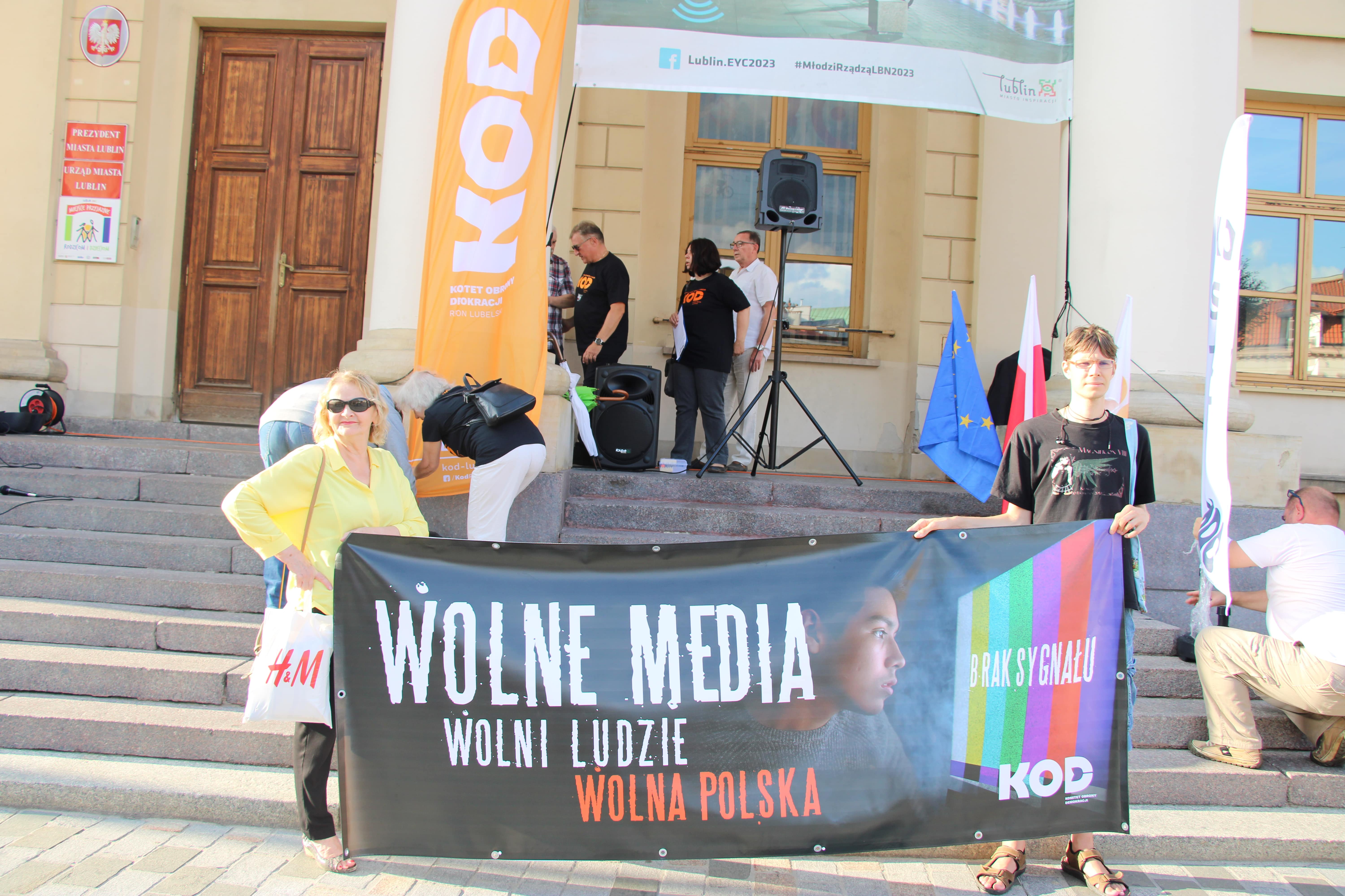 Dlatego Komitet Obrony Demokracji zorganizował pikietę "Wolne media Wolni ludzie Wolna Polska" we wtorek (10 sierpnia) na placu Łokietka - pod Urzędem Miasta Lublin. Na manifestacji było kilkaset osób.