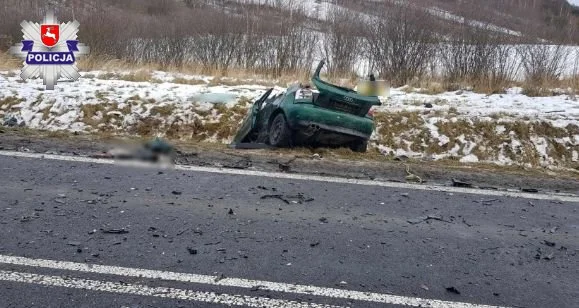 Śmiertelny wypadek samochodowy w Zagrodach. Zginęły dwie osoby, a jedna trafiła do szpitala w Lublinie - Zdjęcie główne